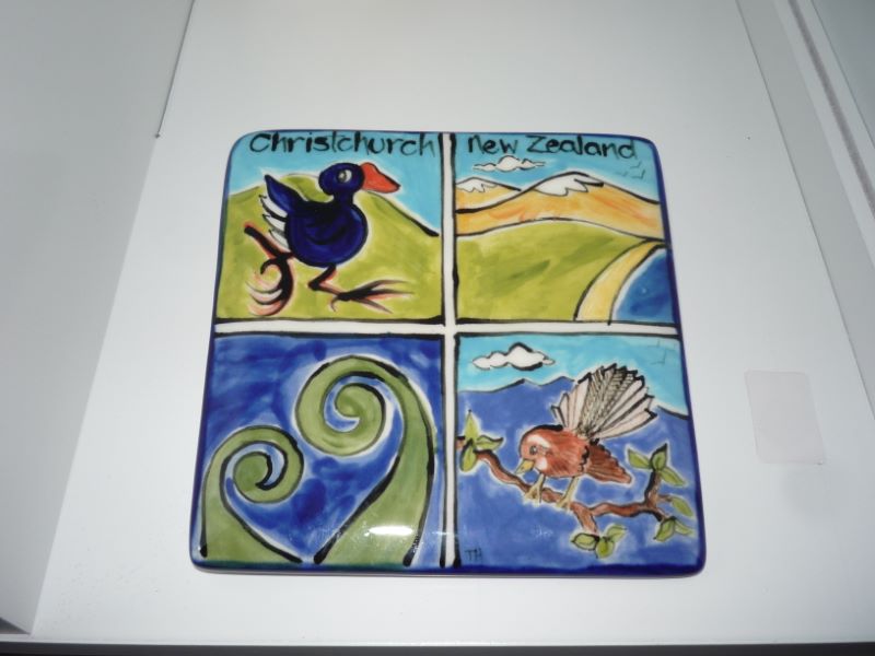 This tile has Christchurch New Zealand on it, but I can just put New Zealand, or anything else you want on it. Pukeko, Mountain scene, Koru, and Fantail hanging tile. 14cm squared.