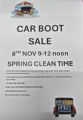 CAR BOOT SALE: November 8th in our car park, still some spots available please contact the office to secure your spot.