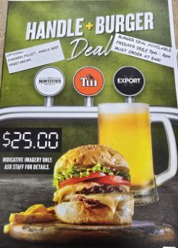 BURGER & HANDLE DEAL is on tonight 5-8pm. Order from the Bar only.